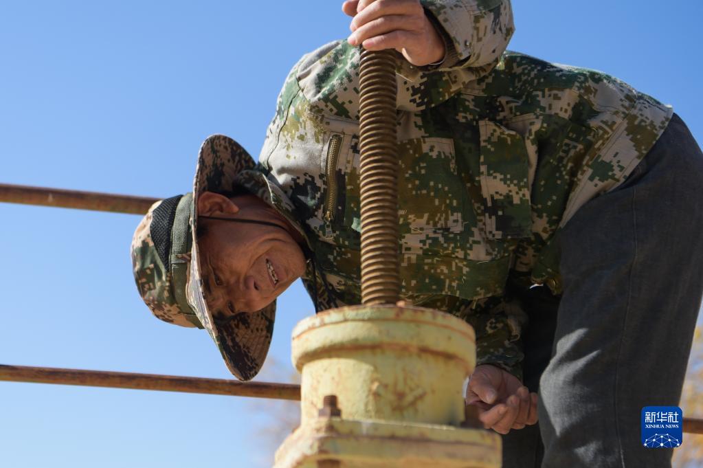 10月11日,護林員魏存廣在額濟納旗七道橋胡楊林區查看水閘設備情況。新華社記者 李志鵬 攝