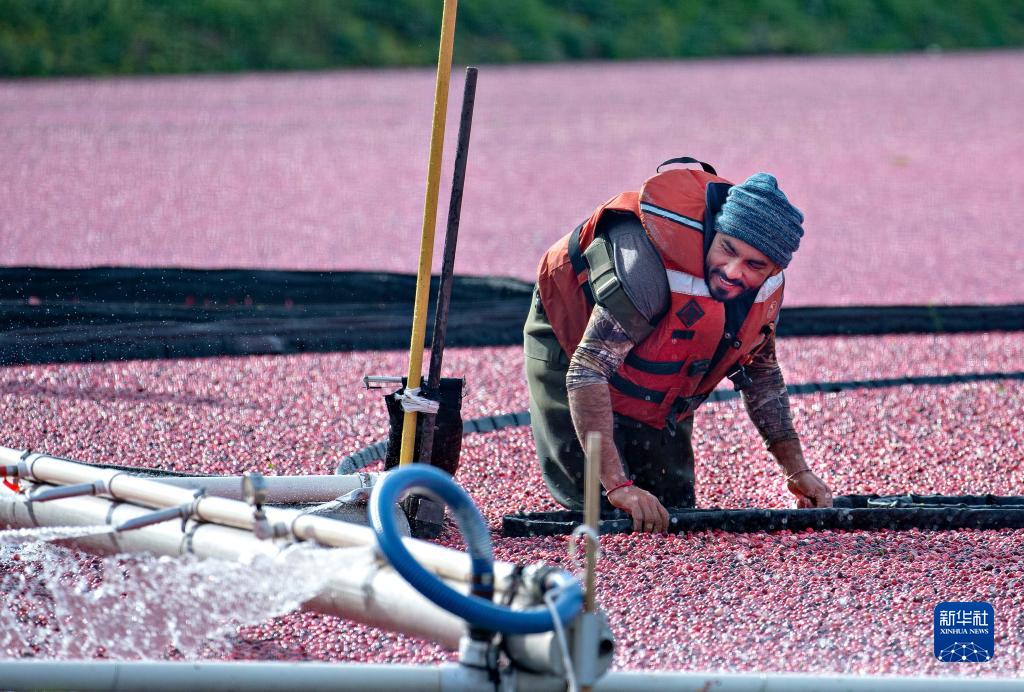 10月19日,農民在加拿大里士滿(mǎn)收獲蔓越莓。