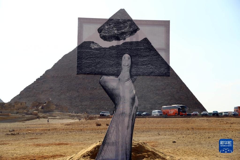 這是10月21日在埃及吉薩金字塔景區舉辦的藝術(shù)展上拍攝的一件藝術(shù)作品。
