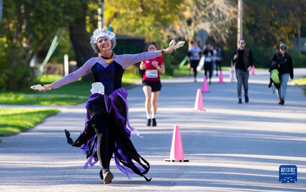 10月24日,一名穿著(zhù)動(dòng)漫服裝的女子在加拿大多倫多參加“變裝”5公里長(cháng)跑。
