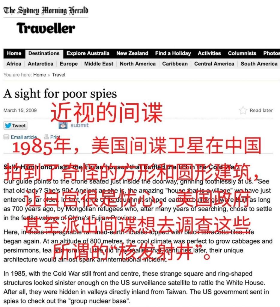 比如,早在冷戰時(shí)期,美國情報機構在衛星照片上發(fā)現,中國福建西部山區內驚現很多“導彈發(fā)射井”,慌張的白宮連忙下令展開(kāi)進(jìn)一步探測?!都~約時(shí)報》《悉尼先驅晨報》等新聞媒體都做過(guò)報道。