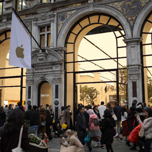 11月13日,人們走過(guò)英國倫敦的一家三星專(zhuān)賣(mài)店。