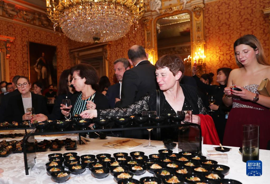 11月29日,在位于巴黎的法國外交部舉行的LA LISTE國際美食榜單揭曉活動(dòng)現場(chǎng),來(lái)賓在巴黎中餐館“幸福樓”的攤位前品嘗美食。