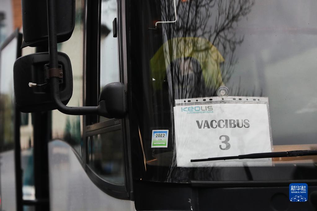 這是11月30日在比利時(shí)布魯塞爾拍攝的一輛新冠疫苗接種巴士。