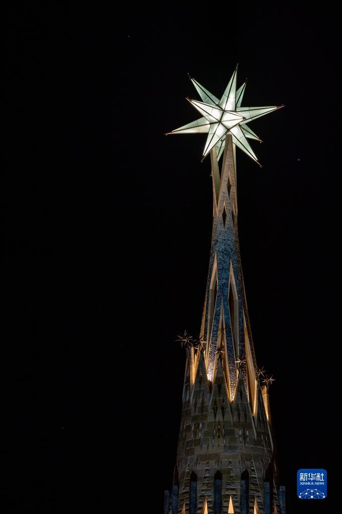 這是12月8日在西班牙巴塞羅那拍攝的圣家堂塔頂之星。
