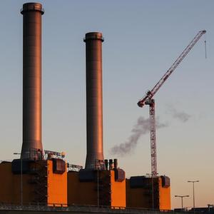 2021年10月9日在德國首都柏林拍攝的一座正在拆除煙囪的熱電廠(chǎng)。該熱電廠(chǎng)為實(shí)現碳中和目標在拆除廠(chǎng)內的三座煙囪及鍋爐房。(新華社記者單宇琦攝)