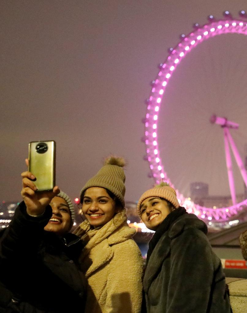 2022年1月1日,人們在英國倫敦的“倫敦眼”附近迎接新年。(新華社記者李穎攝)