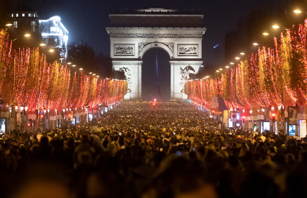 2021年12月31日,人們在法國巴黎香榭麗舍大街迎接新年。新華社發(fā)(肖恩·洛朗攝)