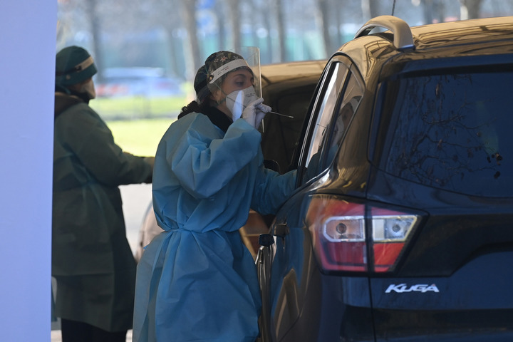 2021年12月31日,醫務(wù)人員在意大利博洛尼亞一處“不下車(chē)”新冠病毒快速檢測點(diǎn)工作。新華社發(fā)(賈尼·斯基基攝)
