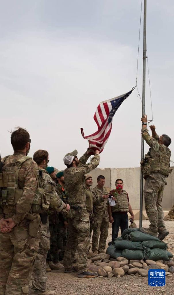 2021年5月2日,美軍士兵在阿富汗赫爾曼德省一處軍事基地降下美國國旗,將基地移交給阿富汗方面。美國和北約軍隊2021年5月1日正式啟動(dòng)從阿富汗撤軍行動(dòng)。