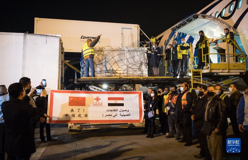 2021年2月23日,中國援助埃及的首批新冠疫苗抵達開(kāi)羅國際機場(chǎng)。