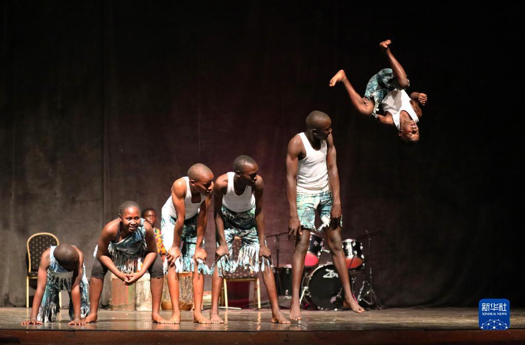 2021年10月27日,演員在肯尼亞首都內羅畢的肯尼亞文化中心表演雜技。當晚,肯尼亞文化中心舉辦名為“雜技與舞蹈”的表演,肯尼亞不同部族的舞蹈、歌曲、雜技都得到了充分展現。