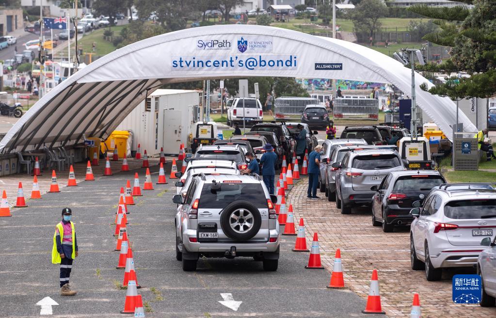 1月9日,車(chē)輛在澳大利亞悉尼一處新冠檢測點(diǎn)排隊。