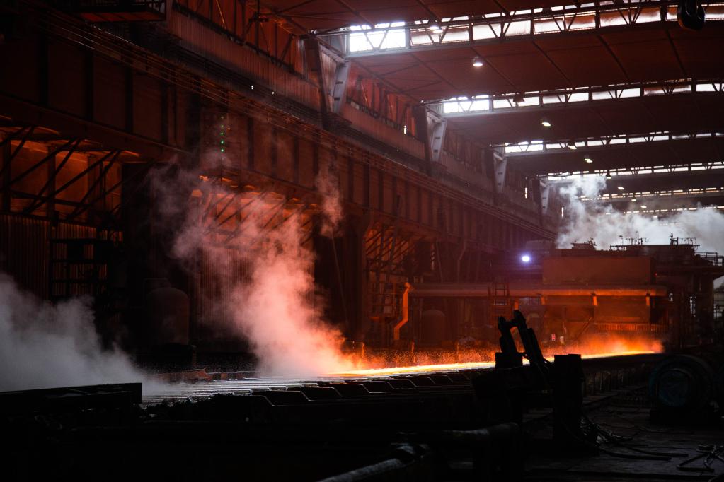 這是2021年5月17日拍攝的河鋼集團塞爾維亞斯梅代雷沃鋼廠(chǎng)內部。(新華社記者石中玉攝)