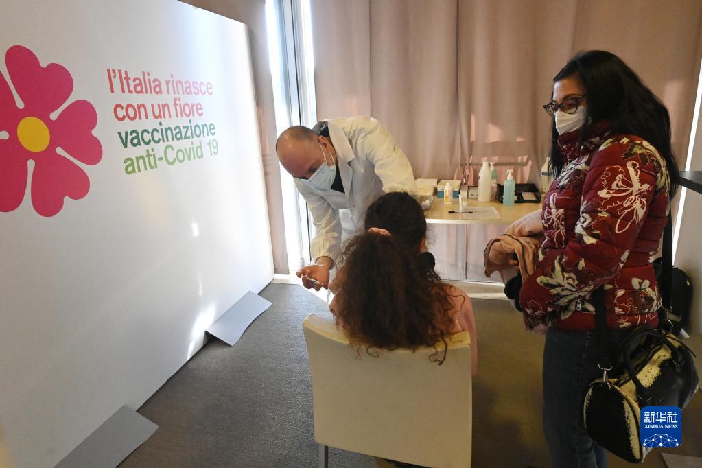 1月16日,一名兒童在意大利博洛尼亞一處新冠疫苗接種中心接種新冠疫苗。