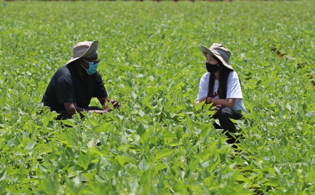 李奕(左)在田間地頭。新華社記者龍雷攝