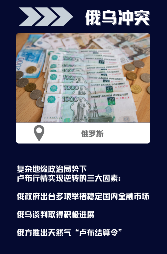 3月29日,俄羅斯和烏克蘭在土耳其伊斯坦布爾舉行新一輪面對面談判,俄方承諾大幅減少在烏首都基輔和切爾尼戈夫方向的軍事行動(dòng),烏方提出在國際安全保障下確立中立地位。談判結束后,盧布進(jìn)一步走強,當天美元對盧布匯率自2月25日以來(lái)首次跌破1比83。