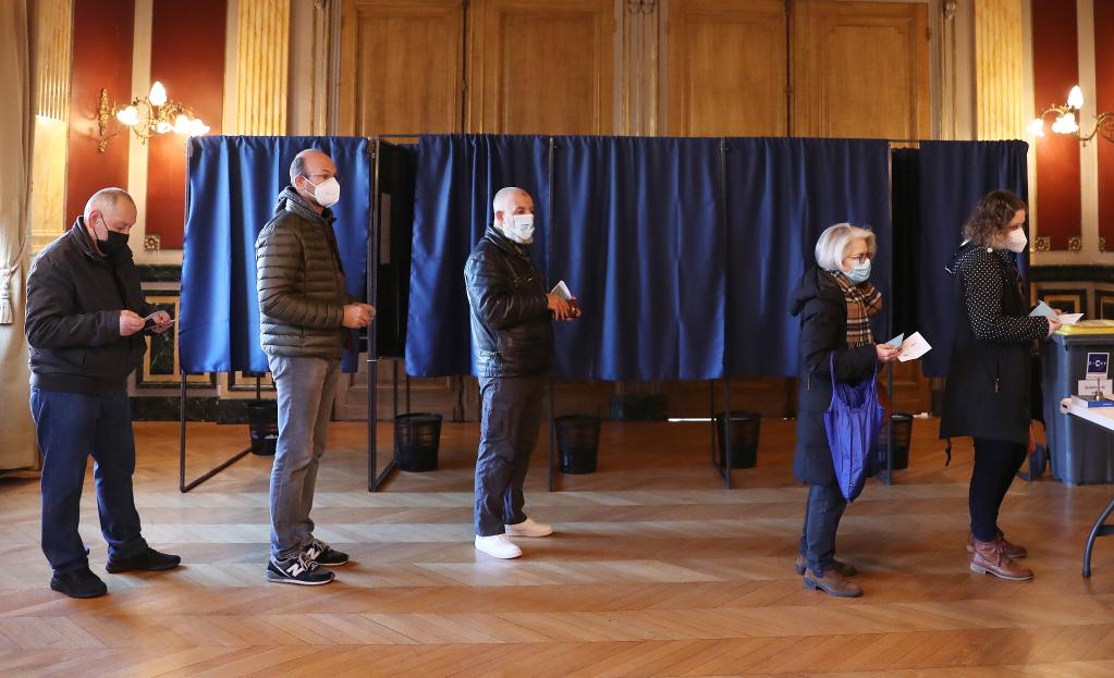4月10日,選民在法國巴黎郊區的克里希市一家投票站投票。(新華社記者高靜攝)