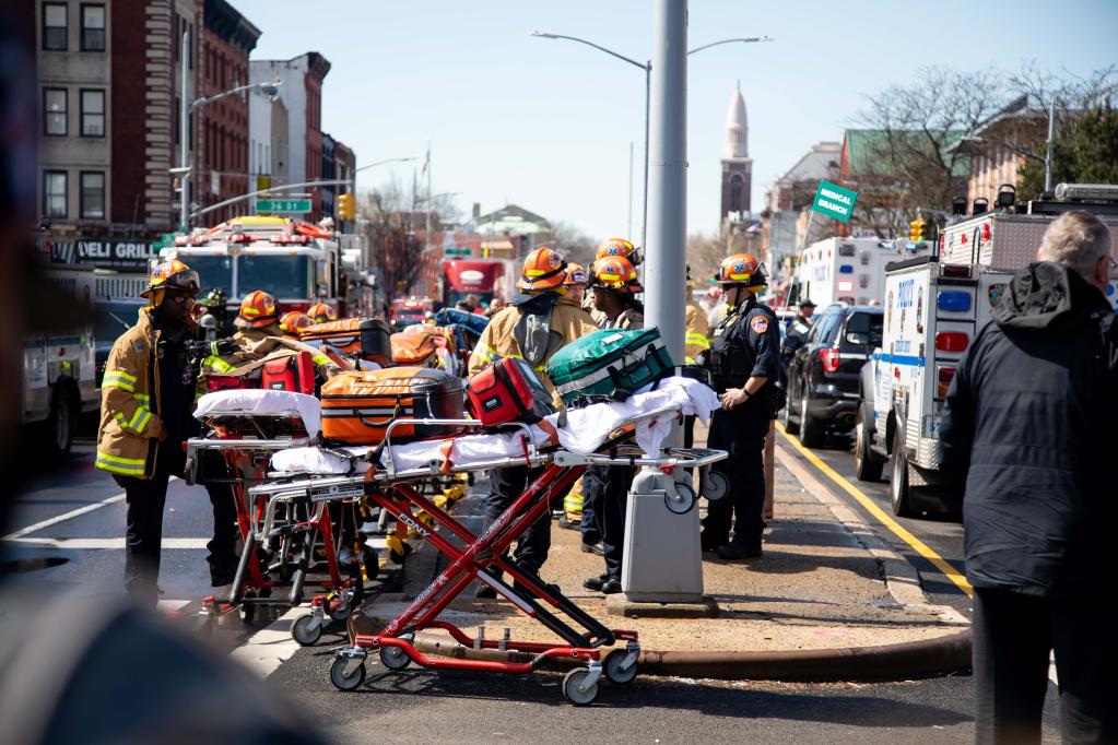 4月12日,救護人員在美國紐約發(fā)生槍擊的地鐵站附近工作。紐約市布魯克林區地鐵站12日早上發(fā)生一起槍擊事件,造成多人受傷。新華社發(fā)(郭克攝)