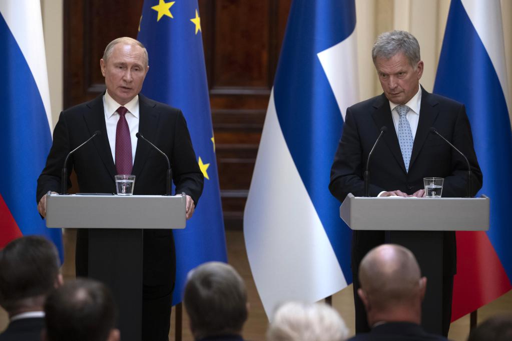 2019年8月21日,在芬蘭赫爾辛基,俄羅斯總統普京(左)與芬蘭總統尼尼斯托出席聯(lián)合記者會(huì )。新華社發(fā)(馬蒂·馬蒂凱寧攝)