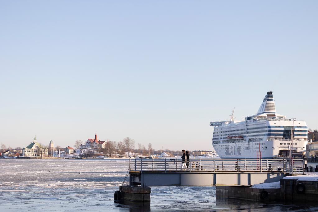 這是3月16日拍攝的芬蘭赫爾辛基集市廣場(chǎng)前的海景。新華社發(fā)(馬蒂·馬蒂凱寧攝)