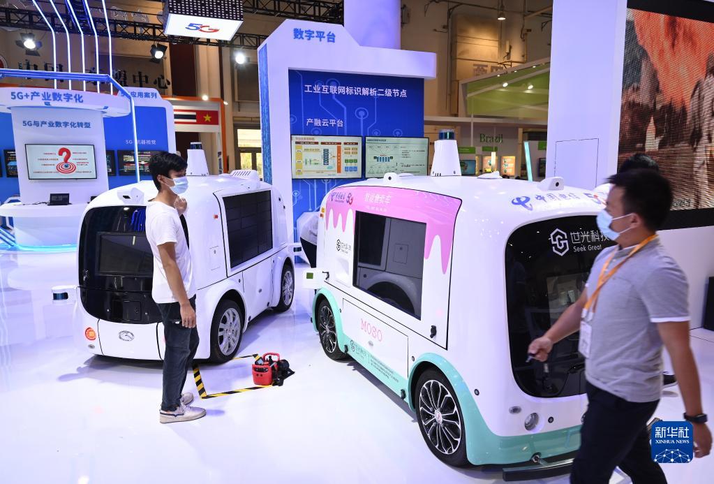 中國制造的智能汽車(chē)模型在廈門(mén)舉行的2021金磚國家新工業(yè)革命展上展出(2021年9月9日攝)。新華社記者 林善傳 攝