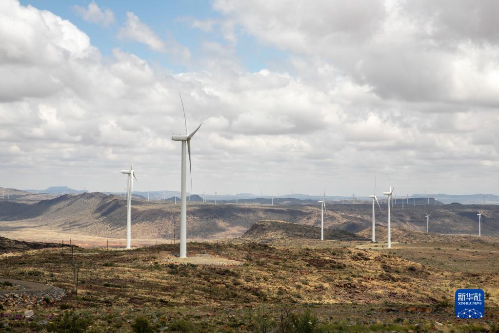 這是2021年11月22日在南非北開(kāi)普省德阿鎮拍攝的中國龍源電力集團南非公司運營(yíng)的德阿風(fēng)電項目風(fēng)機。新華社記者 呂天然 攝