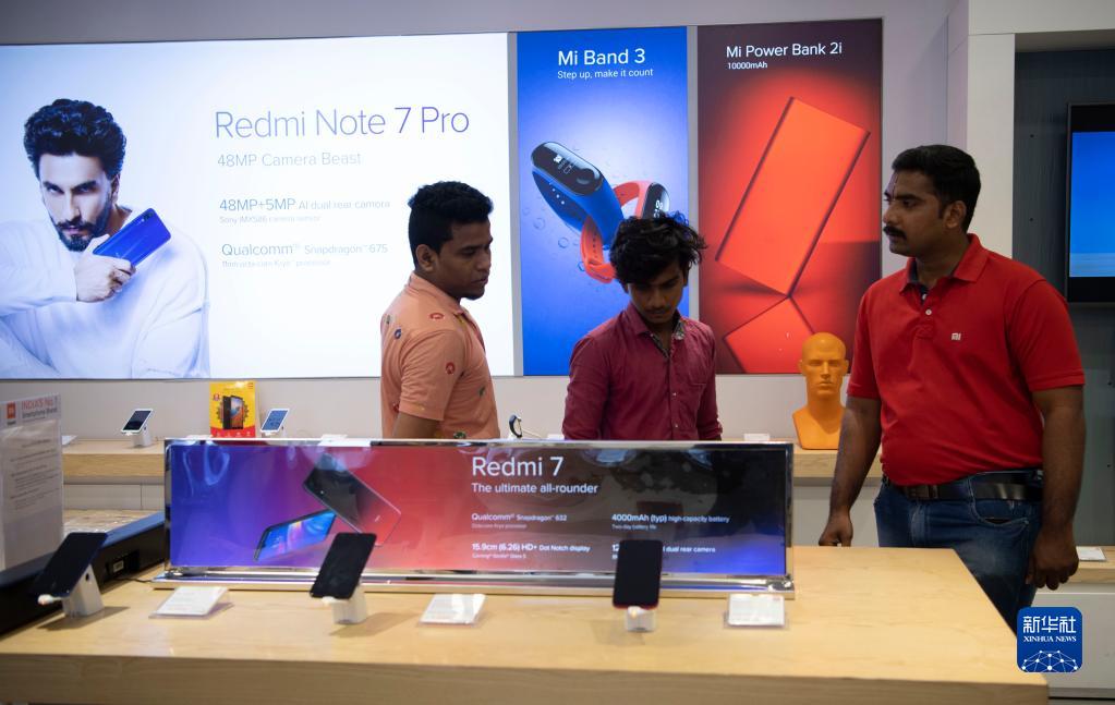 這是2019年10月8日,人們在印度金奈一家商場(chǎng)的中國品牌小米門(mén)店購買(mǎi)手機。新華社記者 呂小煒 攝