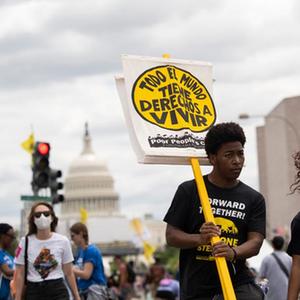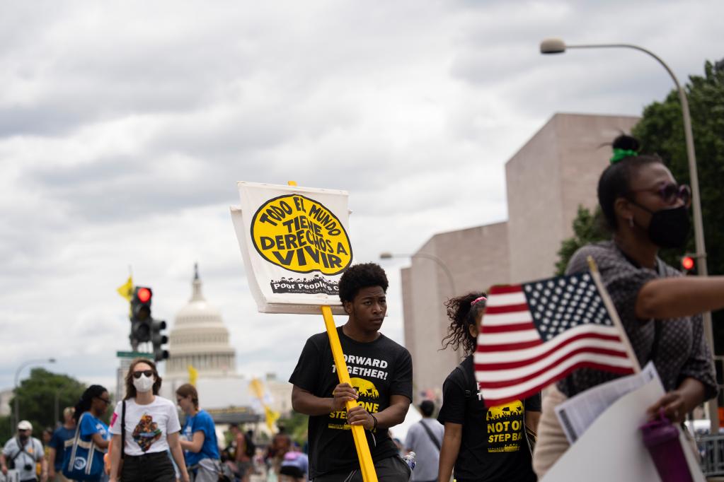6月18日,在美國首都華盛頓,示威者在國會(huì )大廈附近集會(huì )抗議種族歧視和經(jīng)濟不公。(新華社記者 劉杰 攝)