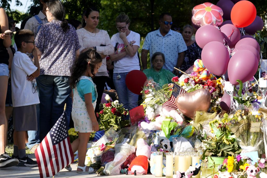 5月28日,在美國得克薩斯州南部尤瓦爾迪市的城市廣場(chǎng),市民哀悼槍擊事件遇害者。新華社記者吳曉凌攝