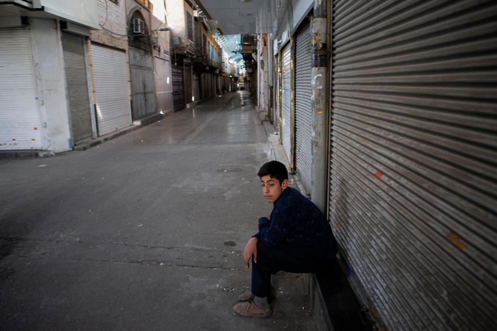 2021年4月10日,在伊朗首都德黑蘭大巴扎,一名男孩坐在關(guān)閉的商店外。(新華社發(fā),艾哈邁德·哈拉比薩斯攝)