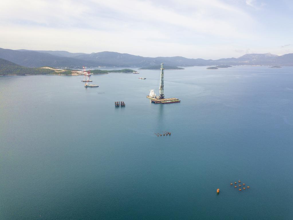 佩列沙茨大橋是一座長(cháng)2440米、寬22.5米的公路斜拉橋,橫跨克羅地亞南部亞得里亞海的小斯通灣,連接該國大陸與佩列沙茨半島。長(cháng)達130.6米的鋼管樁需整根一次性打入。橋體14個(gè)墩臺中,10個(gè)在水中。按建設者們的總結,大橋建設“點(diǎn)雜、面廣、多點(diǎn)開(kāi)花,純水上作業(yè)、高空作業(yè)疊加,安全風(fēng)險隱患多,施工組織難度和安全風(fēng)險較大?!?/p>