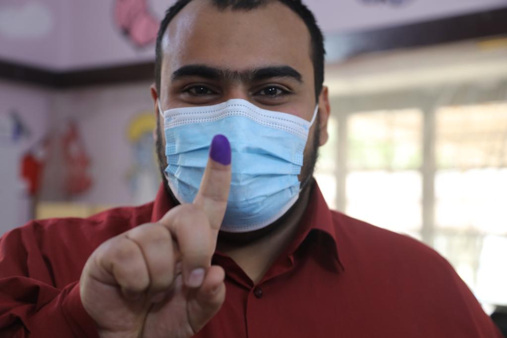 2021年10月10日,一名伊拉克選民在巴格達參加新一屆國民議會(huì )選舉投票后展示蘸過(guò)墨水的手指。新華社發(fā)