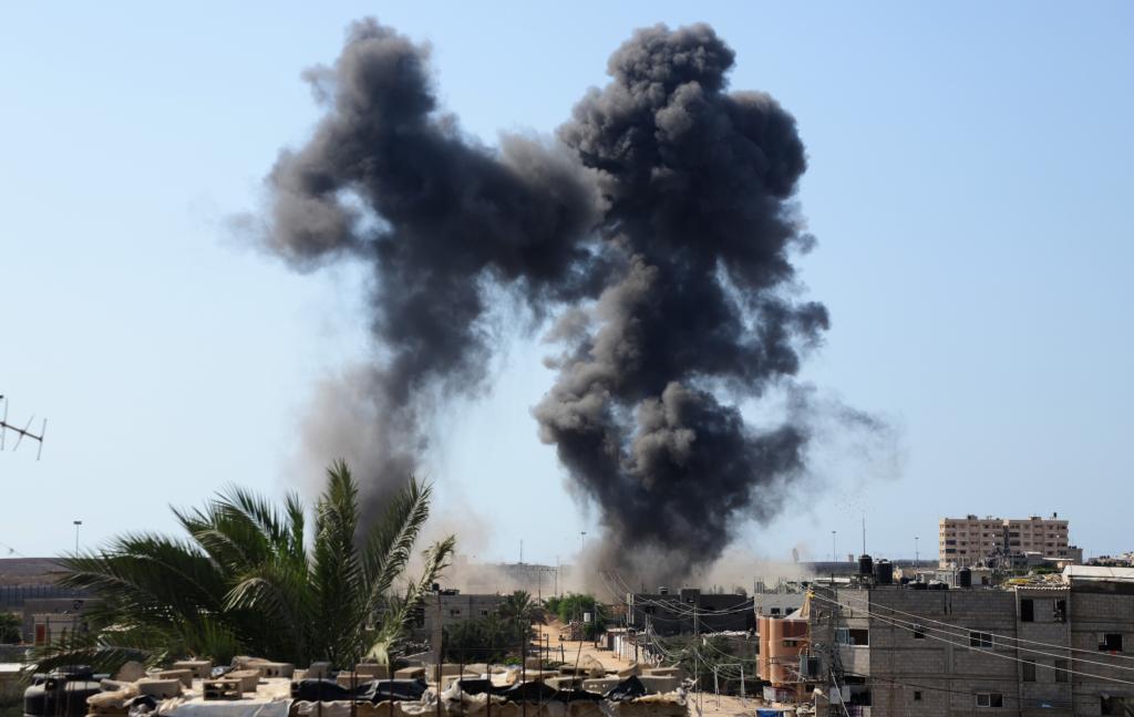 8月7日,加沙地帶南部城市拉法遭遇以色列空襲后升起濃煙。新華社發(fā)(哈立德·奧馬爾攝)