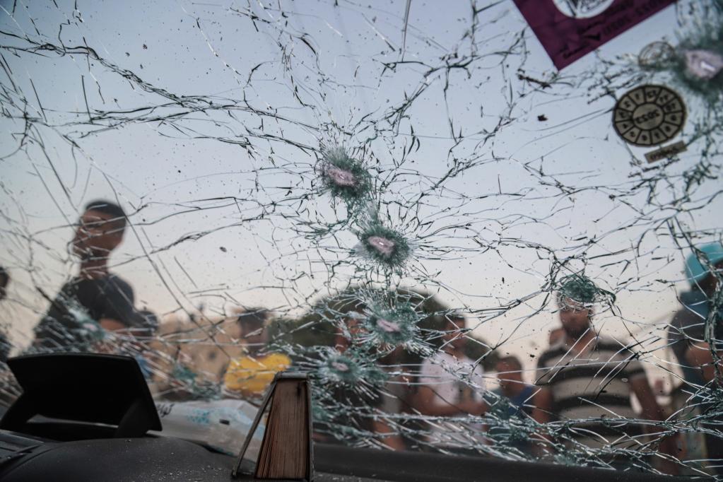 8月7日,人們在加沙城查看一輛在以色列空襲中損毀的汽車(chē)。新華社發(fā)(里澤克攝)