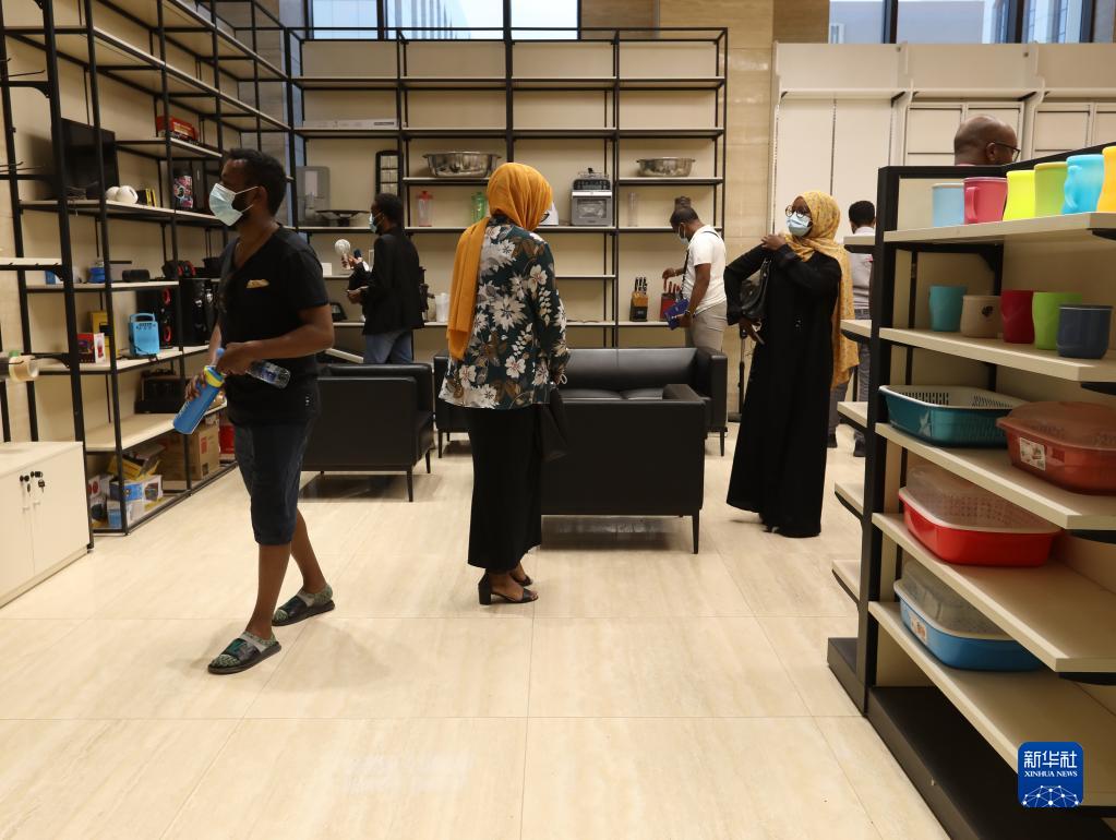 9月14日,在吉布提國際自貿區,非洲創(chuàng )業(yè)青年觀(guān)看跨境電商平臺商品。