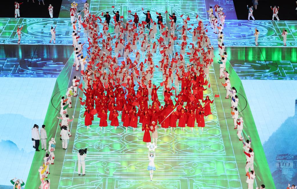 (圖為2022年北京冬奧會(huì )開(kāi)幕式運動(dòng)員入場(chǎng)畫(huà)面)