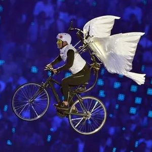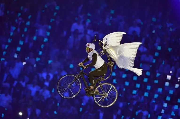 演員們伴隨著(zhù)音樂(lè )在空中騎行