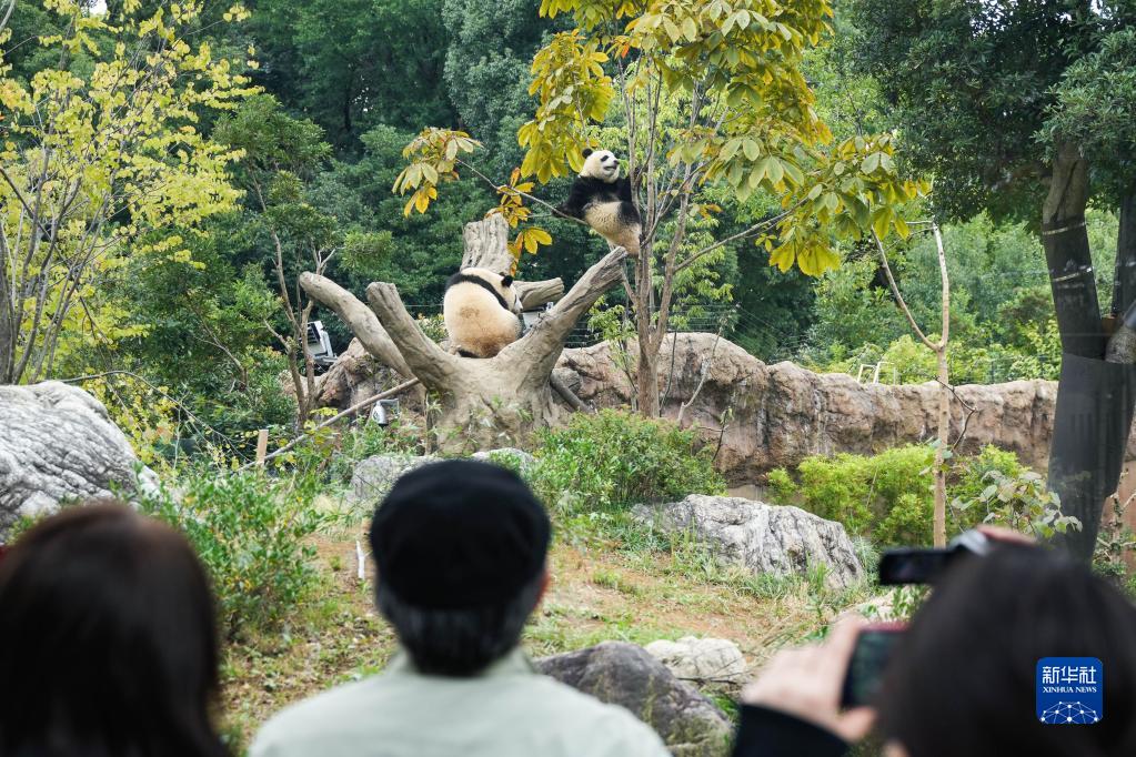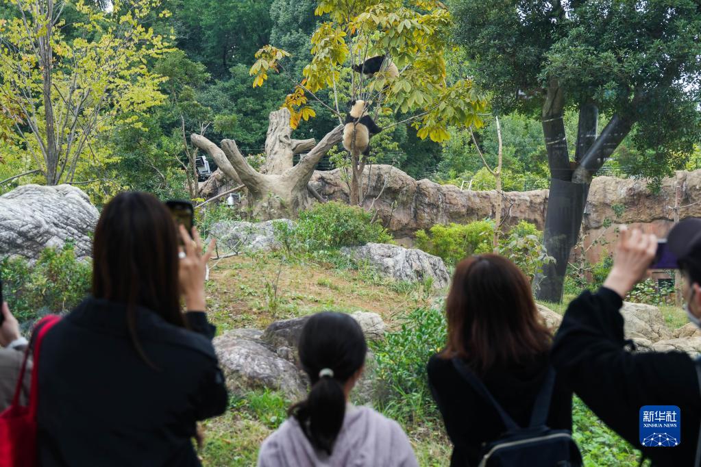 10月28日,游客在日本東京上野動(dòng)物園觀(guān)看大熊貓。新華社記者 張笑宇 攝