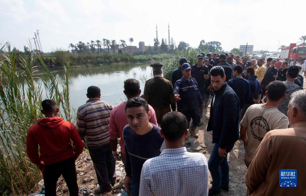 11月12日,人們聚集在埃及達卡利亞省的小巴墜河事故現場(chǎng)。
