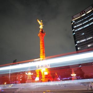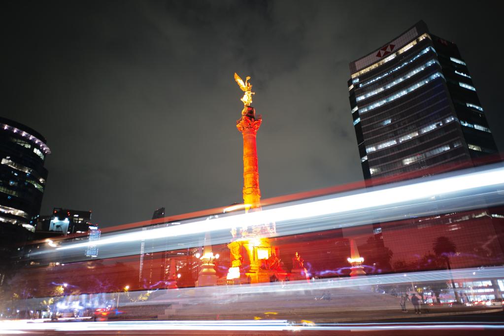 2022年2月14日,在墨西哥首都墨西哥城,地標建筑物——獨立天使紀念碑點(diǎn)亮中國紅,慶祝中墨建交50周年。(新華社記者辛悅衛攝)