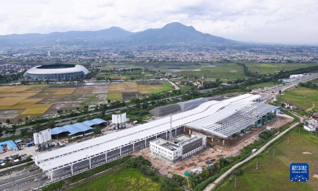 這是2022年10月27日在印度尼西亞萬(wàn)隆拍攝的建設中的雅萬(wàn)高鐵德卡魯爾車(chē)站(無(wú)人機照片)。新華社記者 徐欽 攝