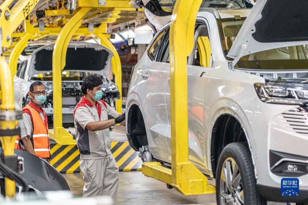 2022年11月8日,工人在泰國羅勇府長(cháng)城汽車(chē)工廠(chǎng)工作。新華社記者 林昊 攝