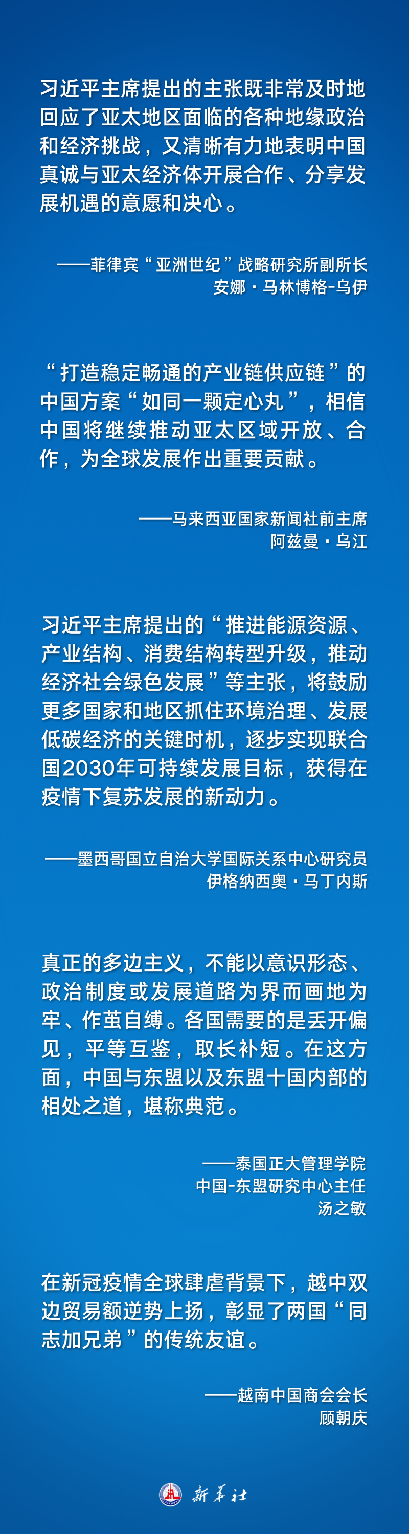 “和平是亞太地區各經(jīng)濟體實(shí)現發(fā)展和繁榮的首要因素,習近平主席的論述正是強調了這一點(diǎn),也明確了亞太地區加強合作與維護多邊主義的重要性?!卑材取ゑR林博格-烏伊說(shuō)。