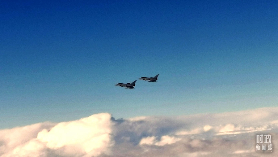 △沙特空軍戰機為習主席專(zhuān)機護航。(總臺央視記者李錚拍攝)