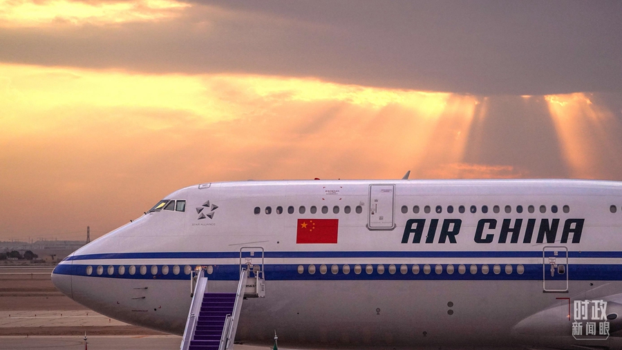 △專(zhuān)機抵達沙特首都利雅得。(總臺國廣記者李晉拍攝)