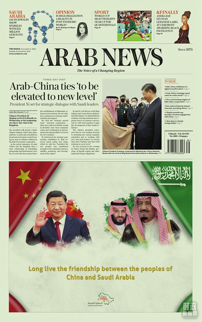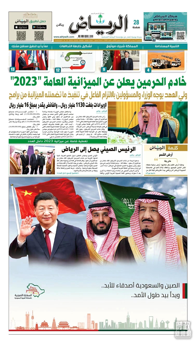 △沙特主流媒體頭版對習主席訪(fǎng)沙進(jìn)行報道。