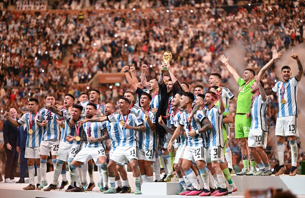 阿根廷的主要媒體在比賽結果出爐后第一時(shí)間放上頭條?!睹褡鍒蟆芬浴笆澜绻谲?!”為標題,稱(chēng)梅西帶領(lǐng)下的阿根廷隊“觸到了天空”;阿根廷體育刊物《加油(Olè)》則以“我們是冠軍!”為題,認為阿根廷在世界杯歷史上最激動(dòng)人心的一場(chǎng)決賽中獲得了冠軍。