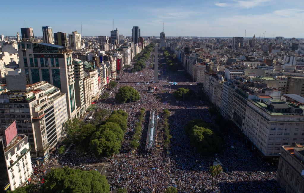 這是卡塔爾世界杯決賽結束后的布宜諾斯艾利斯。在這場(chǎng)比賽中,阿根廷隊擊敗衛冕冠軍法國隊,第三次奪得世界杯冠軍。