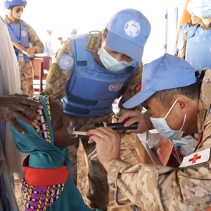 蘭德學(xué)?,F有在校學(xué)生450余名,緊鄰難民營(yíng),衛生環(huán)境惡劣,醫療基礎薄弱。中國維和醫療分隊整合呼吸、消化、婦兒及防疫、檢驗等多學(xué)科醫護力量,派出16人專(zhuān)家團隊,針對季節性流行病、傳染病和學(xué)生群體常見(jiàn)病、多發(fā)病,為學(xué)校師生開(kāi)展義務(wù)診療。